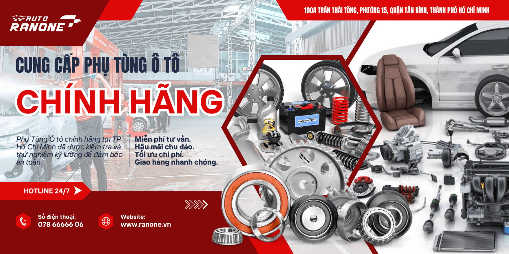 Chúng tôi luôn áp dụng các công nghệ kỹ thuật cao và trang thiết bị máy móc hiện đại tối tân bậc nhất. Đảm bảo các quy trình chăm sóc xe trở nên chính xác, nhanh chóng và tiết kiệm thời gian của khách hàng. Tại đây, khách hàng có thể tân trang với những phụ tùng chính hãng và uy tín trên thị trường với mẫu mã đa dạng, giá cả hợp lý, nguồn gốc xuất xứ và chế độ bảo hành đúng theo tiêu chuẩn.