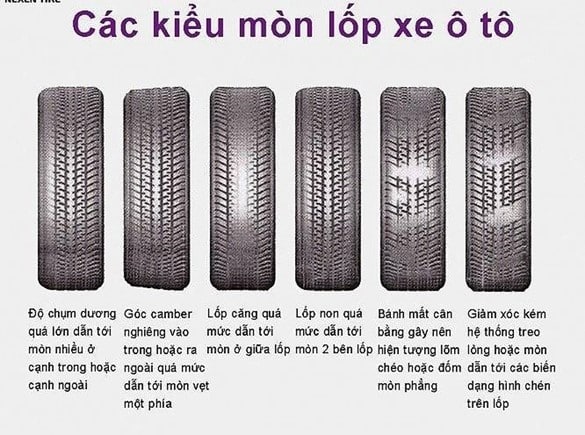 – Lốp Bị Mòn Không Đều: Nếu bạn thấy lốp xe mòn không đều, có thể do vấn đề về căn chỉnh bánh xe hoặc áp suất lốp không đúng.